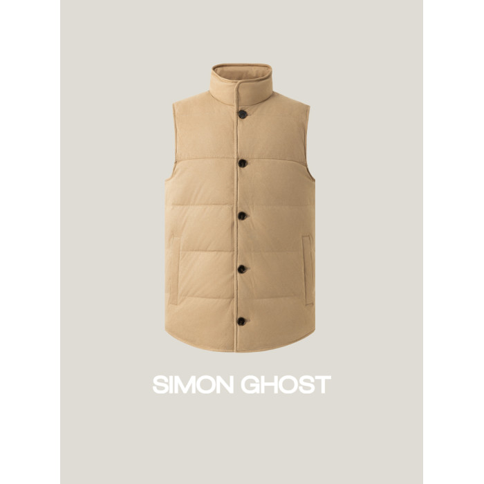 SIMON GHOST 男士秋冬新款麂皮絨馬甲休閒黃色羽絨馬夾外套上衣