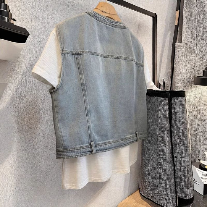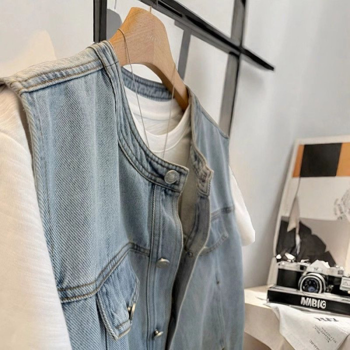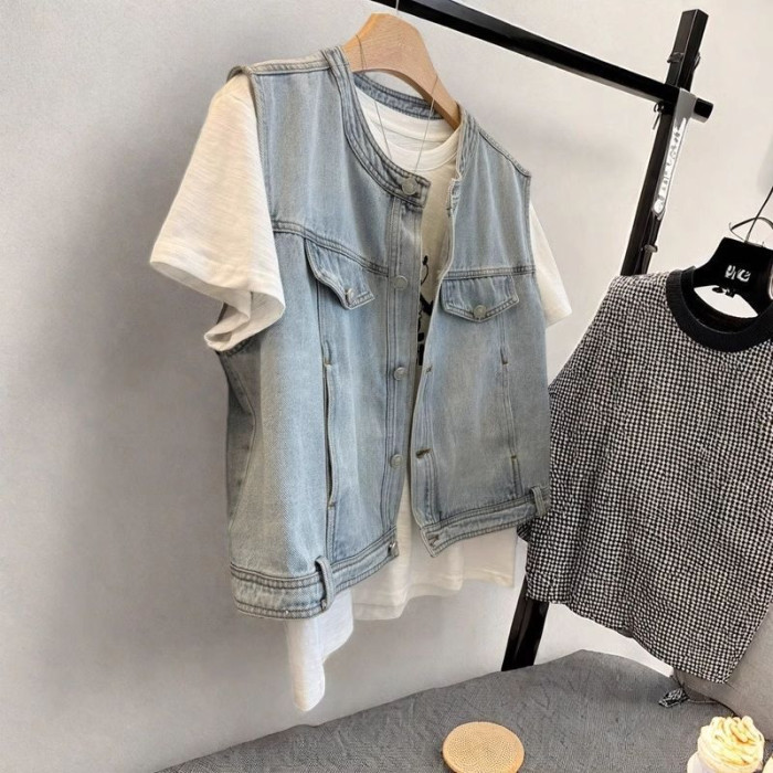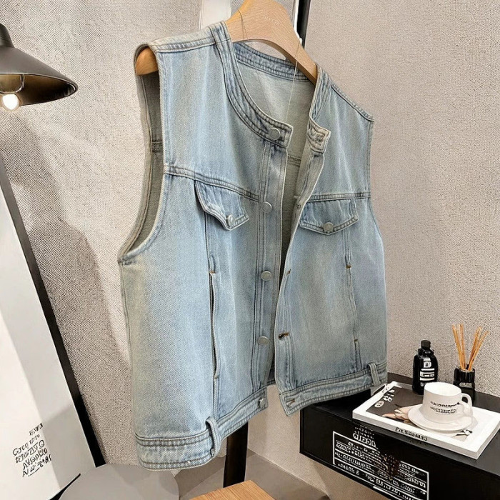 大碼300斤淺色牛仔坎肩馬甲男女裝夏季韓版復古寬松曡穿無袖外套2