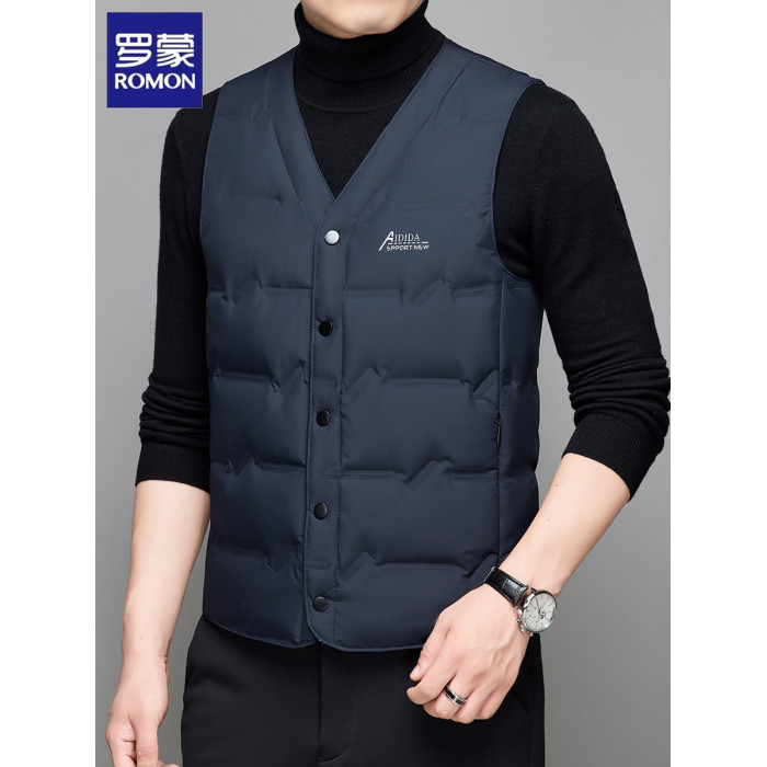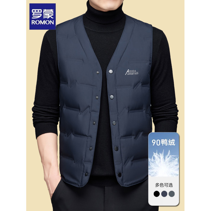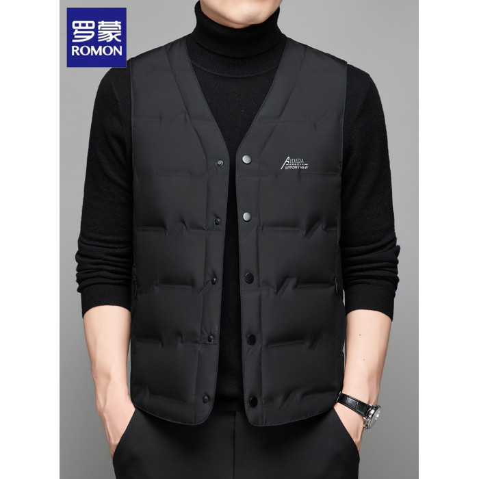 羅矇輕薄羽絨馬甲男款秋冬新款爸爸防寒保暖上衣男士無袖坎肩外套