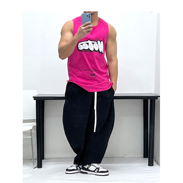 好面料純棉質感!背心肌肉男無袖T恤顯身材健身修身海灘旅遊寬松潮