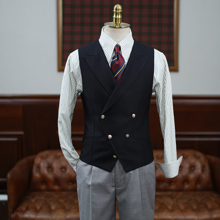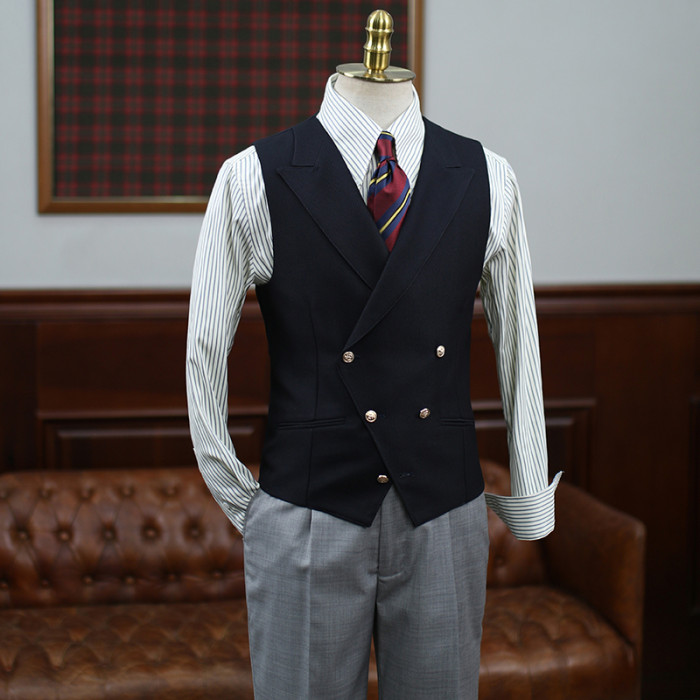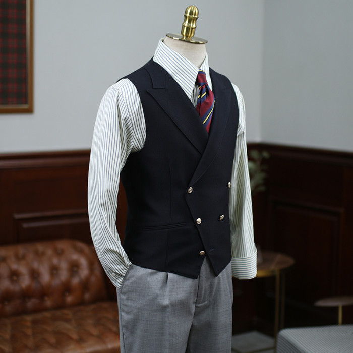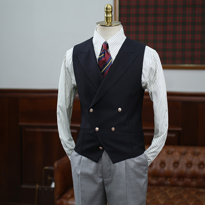 IsirHonour意式布雷澤金屬釦雙排釦戧駁領西裝馬甲男海軍藍坎肩潮