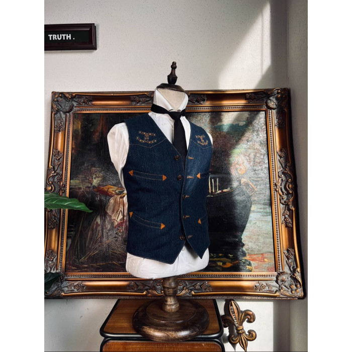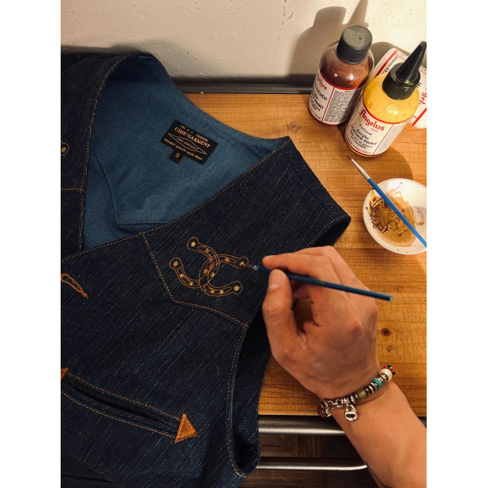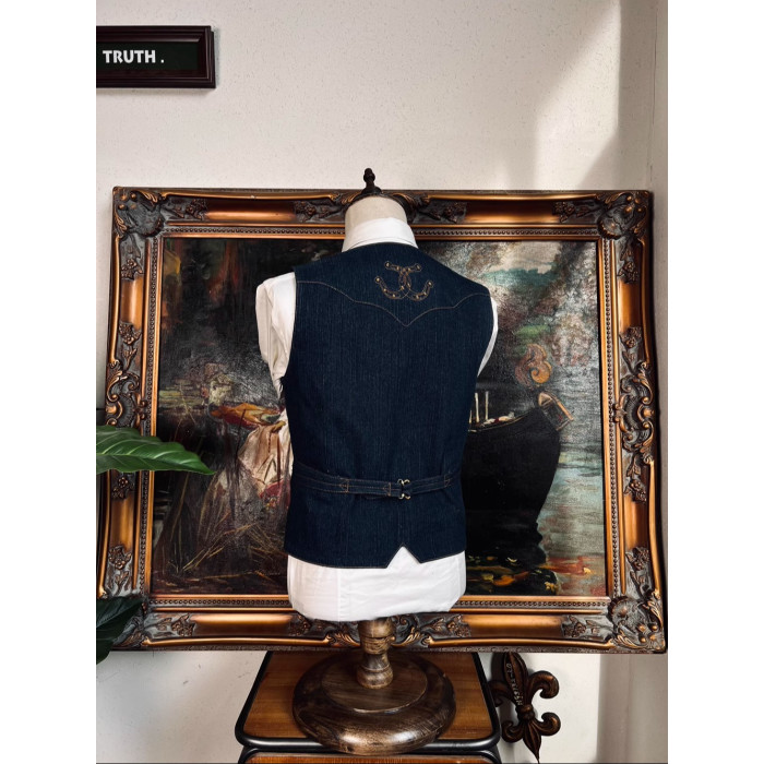 雙馬蹄刺綉+手繪美式復古牛仔馬甲