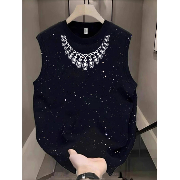 美式高街坎肩背心男女款夏季潮牌ins復古運動滿天星黑無袖純棉T恤