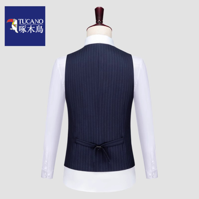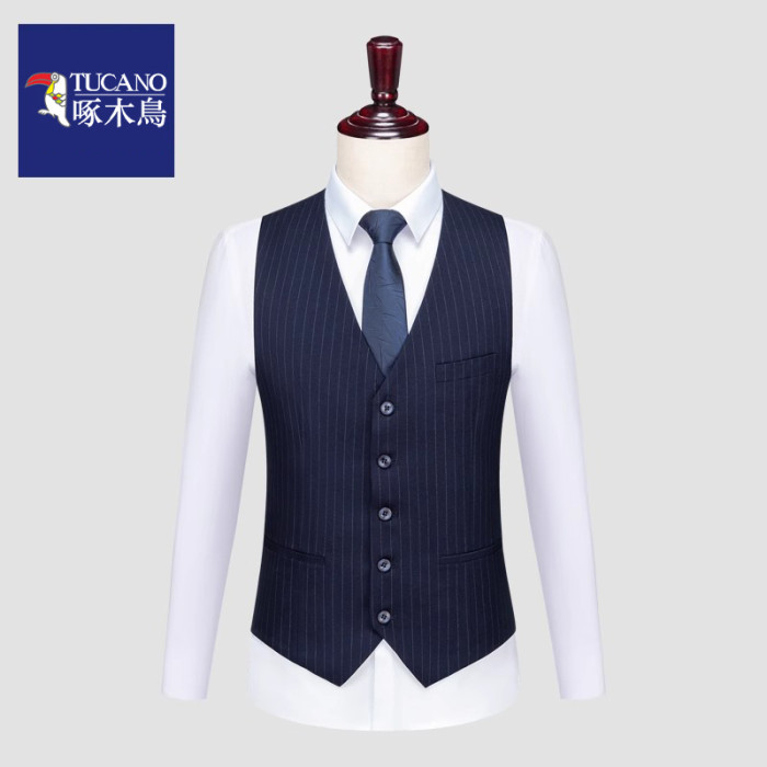啄木鳥商務條紋休閒西裝馬甲新郎結婚禮服男伴郎團馬夾英倫風紳士