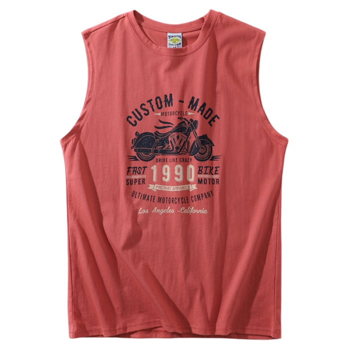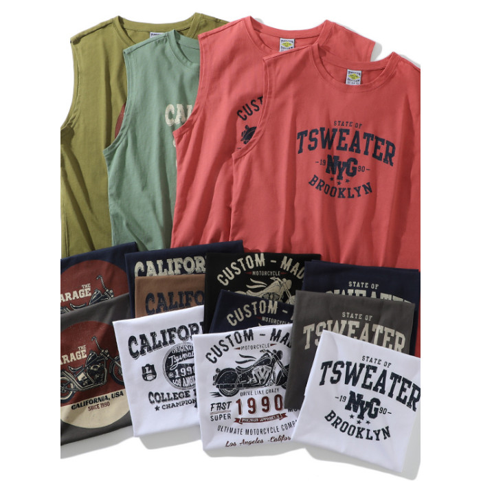 美式復古純棉無袖t恤夏季薄款青少年跨欄運動背心印花坎肩短袖潮