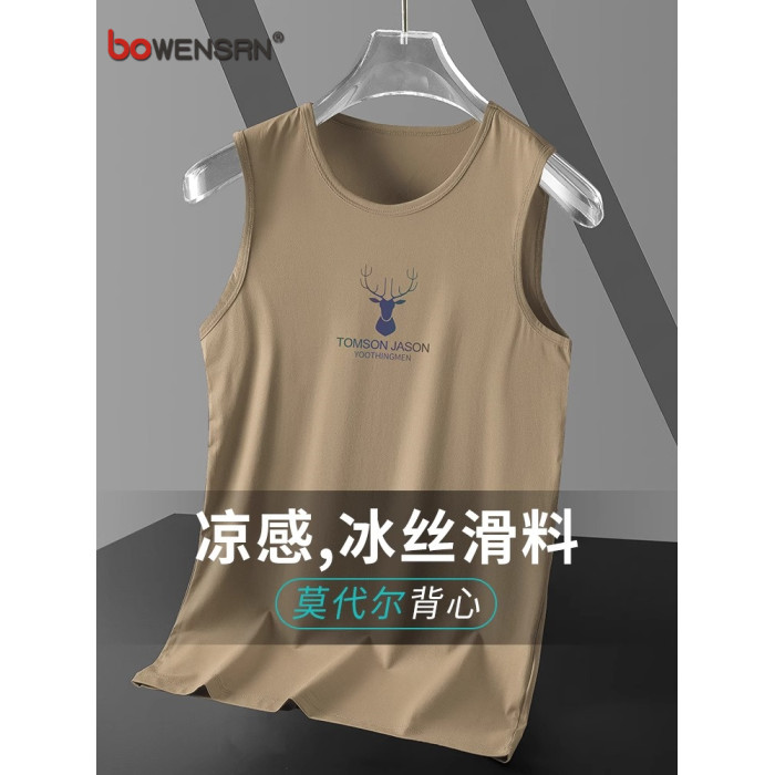 莫代爾冰絲無袖T恤男士背心2025年夏季新款涼感運動坎肩上衣男款