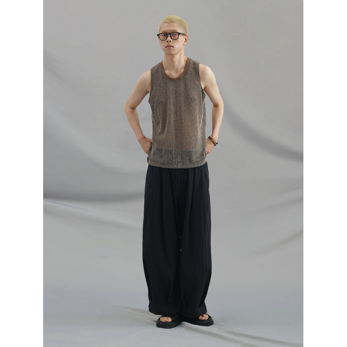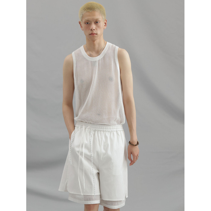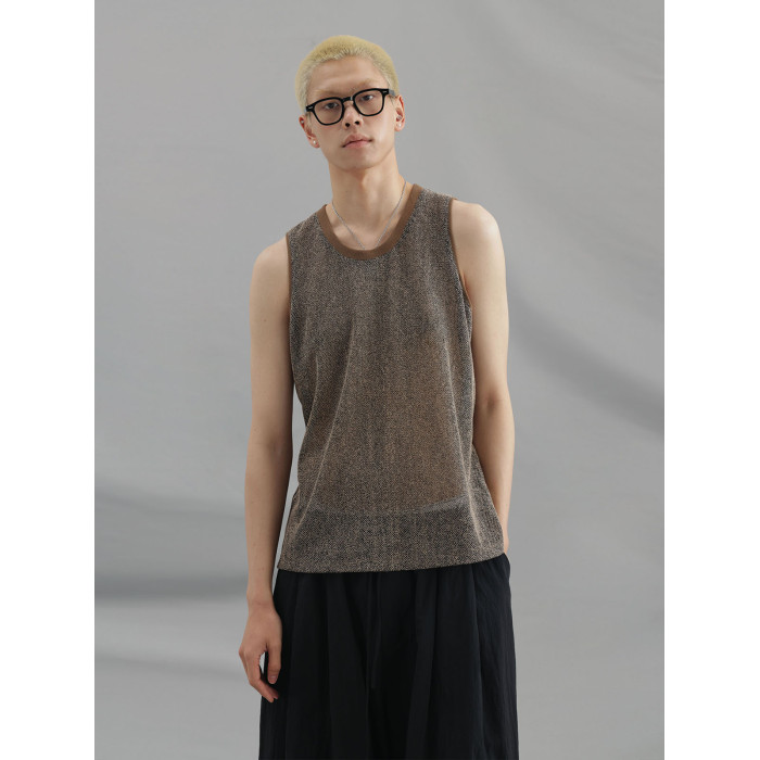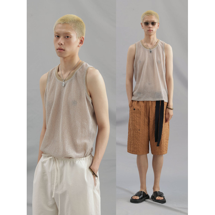 ASTAROTH透氣針織復古網眼背心男坎肩運動鏤空設計直筒咖色日系