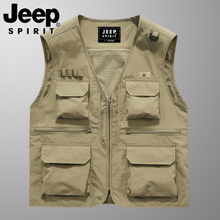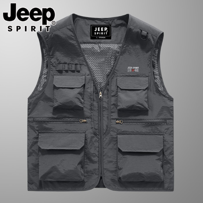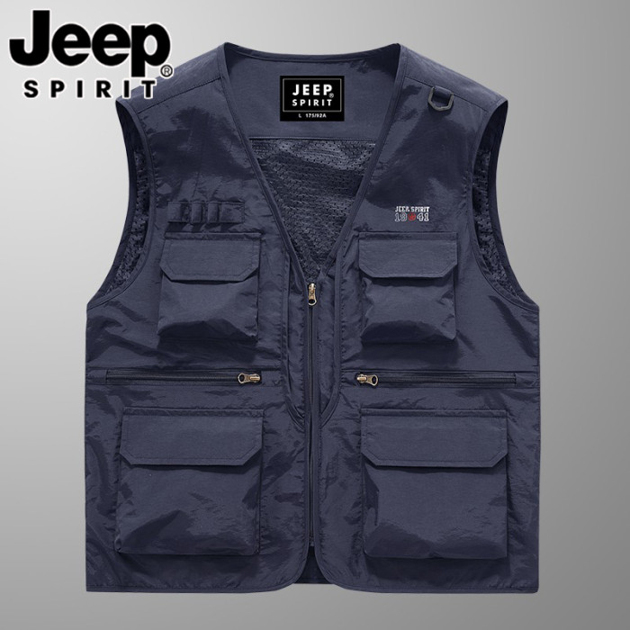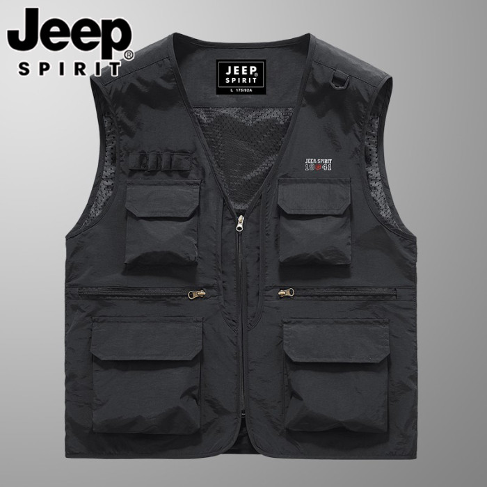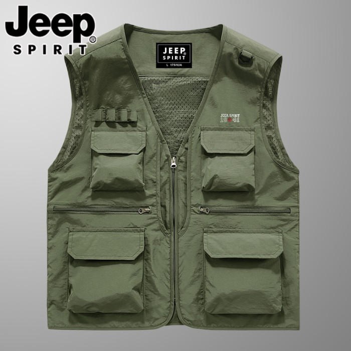 JEEP吉普春夏季薄款馬甲男士速乾防水網眼多口袋工裝釣魚攝影馬夾