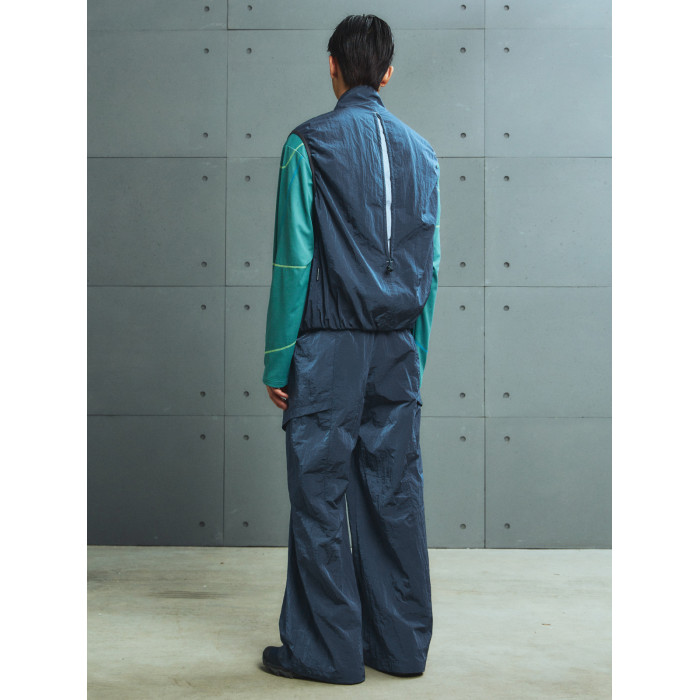 MOUNTAINFEVER AW24 皺感尼龍 六袋收納變包 格紋雙面穿立領馬甲