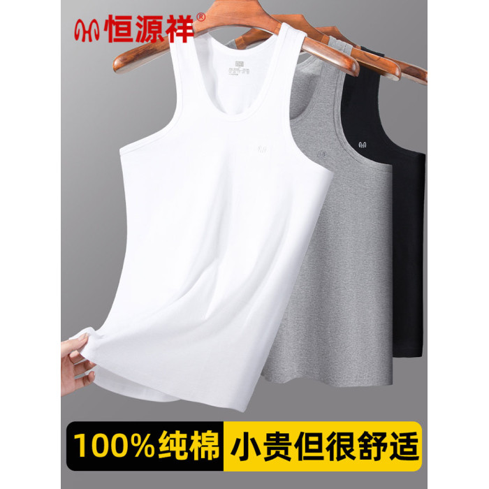 恒源祥春夏男士背心純棉大碼抑菌薄款健身吸汗透氣全棉打底汗衫