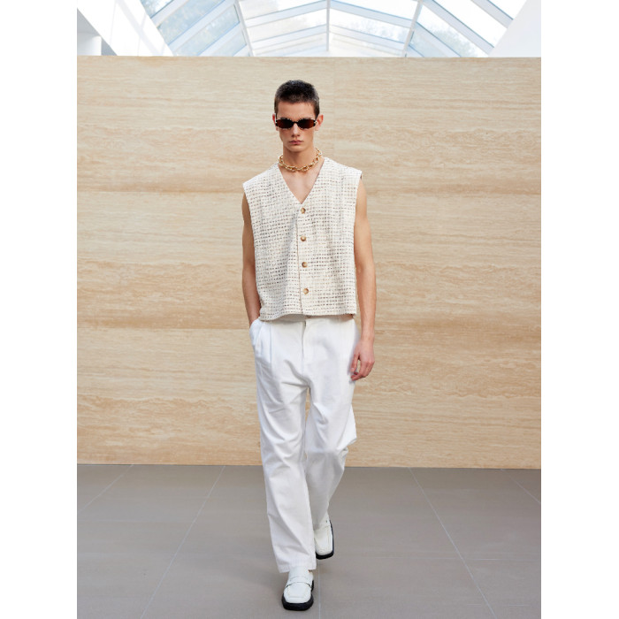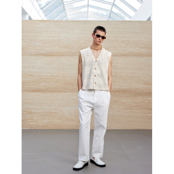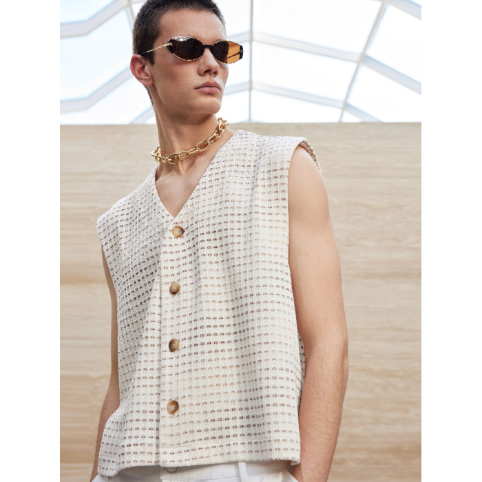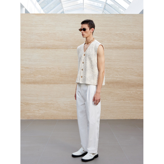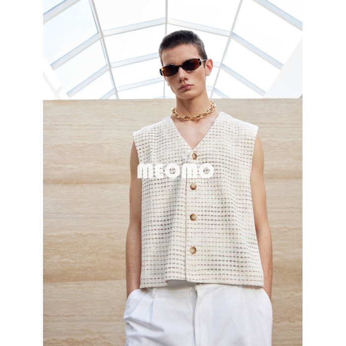 某人MEOMO設計師品牌2025夏季新款馬甲V領肌理感面料棉麻風英倫潮