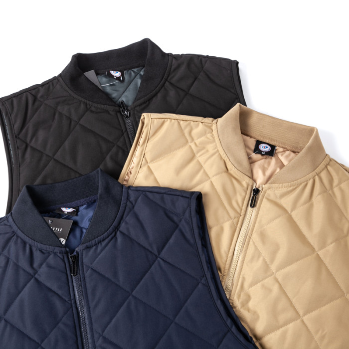 秋冬季菱形馬甲棉衣男休閒棒球領棉服純色百搭加棉加厚坎肩外套潮