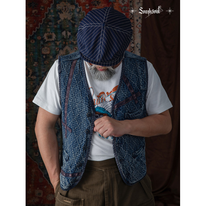 李現同款去有風的地方重磅刺子馬甲藍染單排釦水洗做舊southsoul