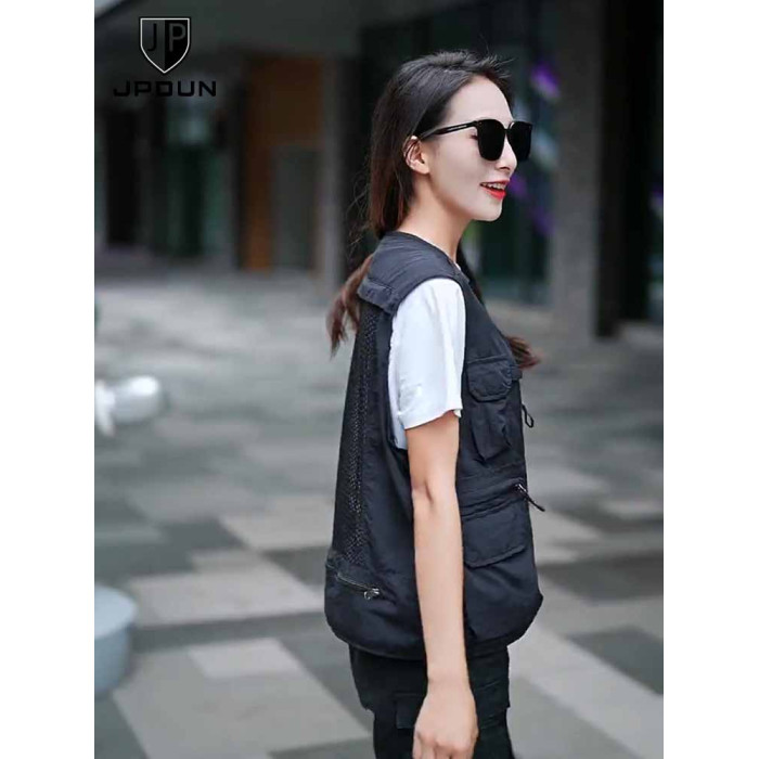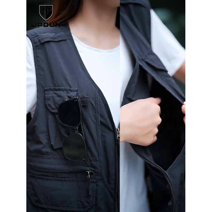 JPDUN/夏季馬甲男薄款多口袋工裝坎肩戶外寬松登山攝影速乾馬夾女
