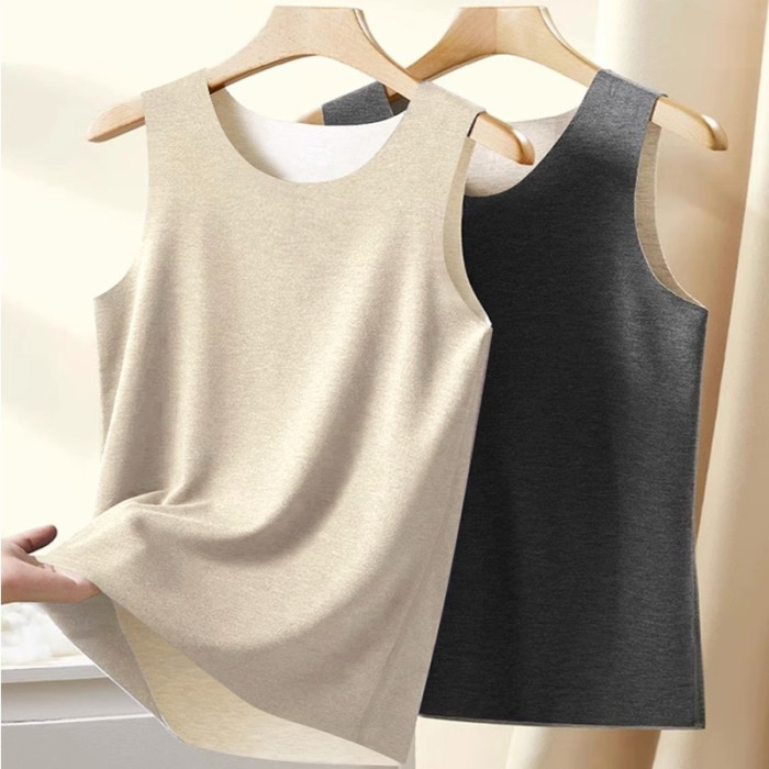 蠶絲羊毛德絨冬季保暖背心男士加絨髮熱無痕內衣打底坎肩上衣秋衣