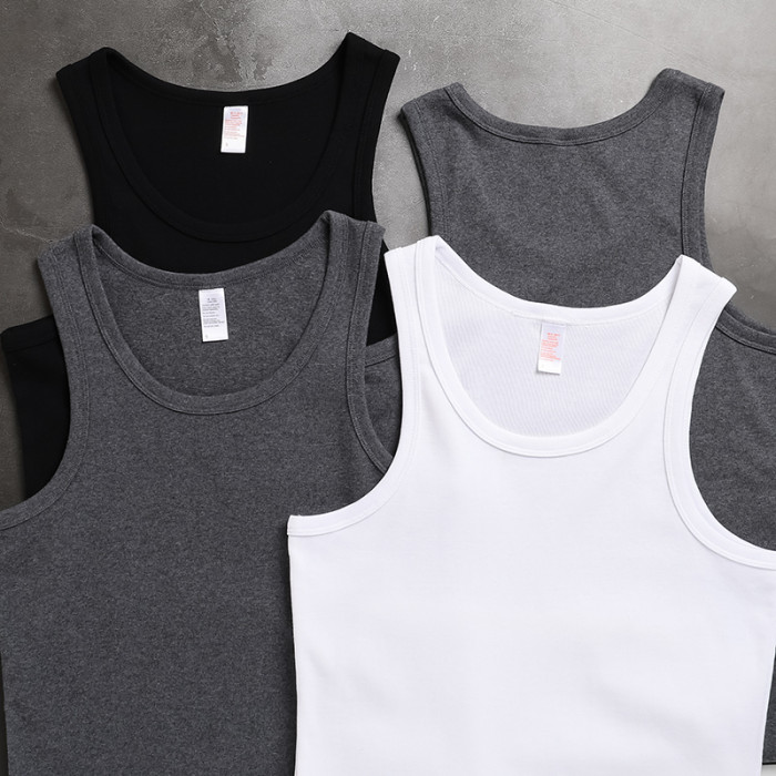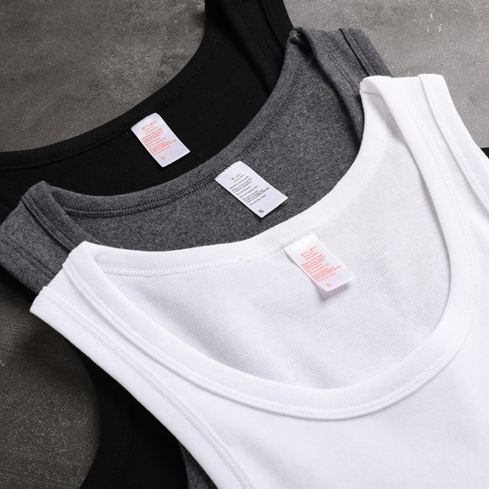 阿美哢嘰重磅純棉白色彈力修身背心男基礎款夏季運動百搭純色背心