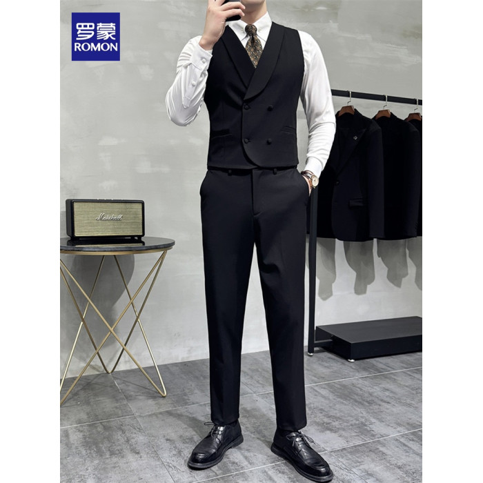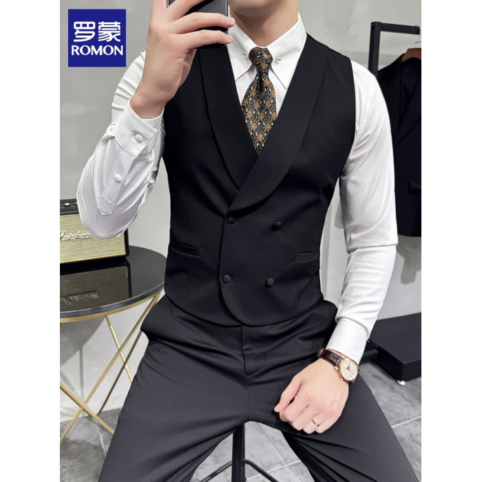 羅矇新郎馬甲套裝男商務正裝英倫風雙排釦西裝馬夾伴郎團結婚禮服