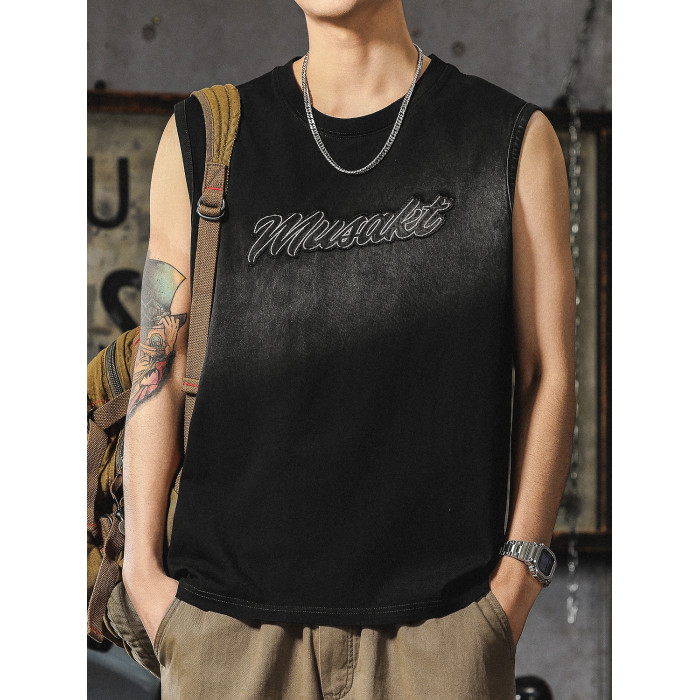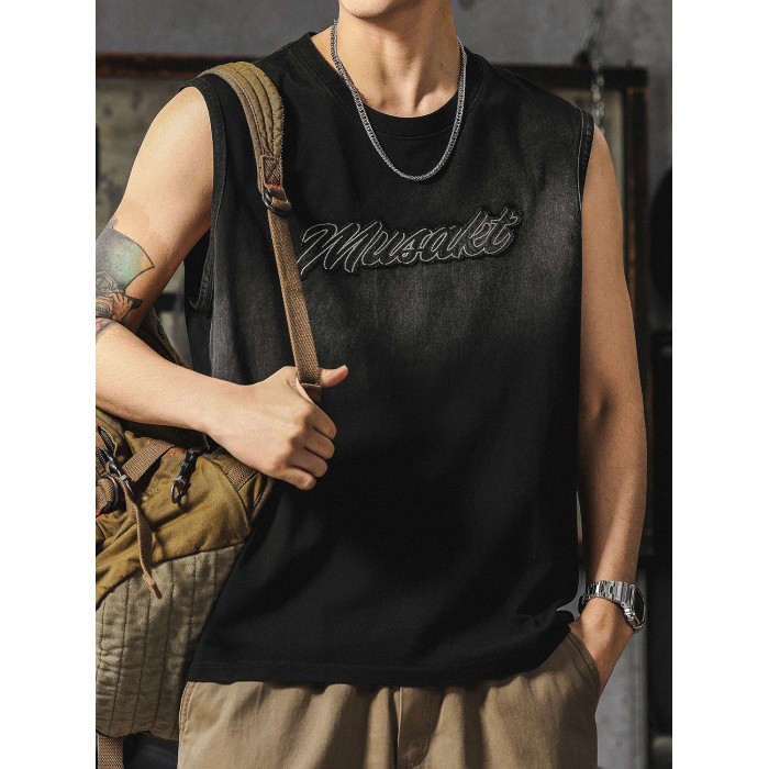 復古做舊水洗重磅背心男高級感痞帥寬松純棉T恤潮流美式無袖坎肩