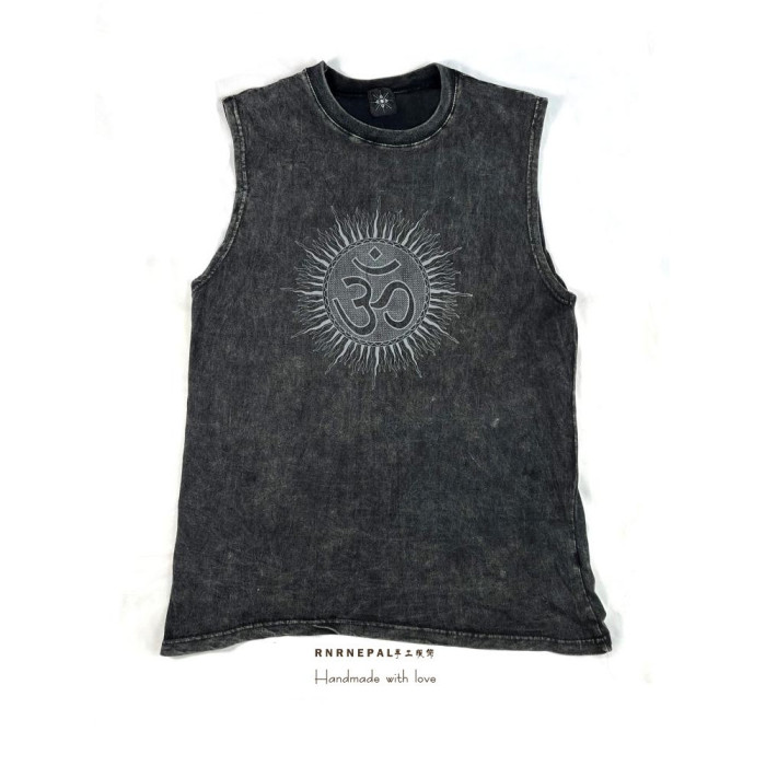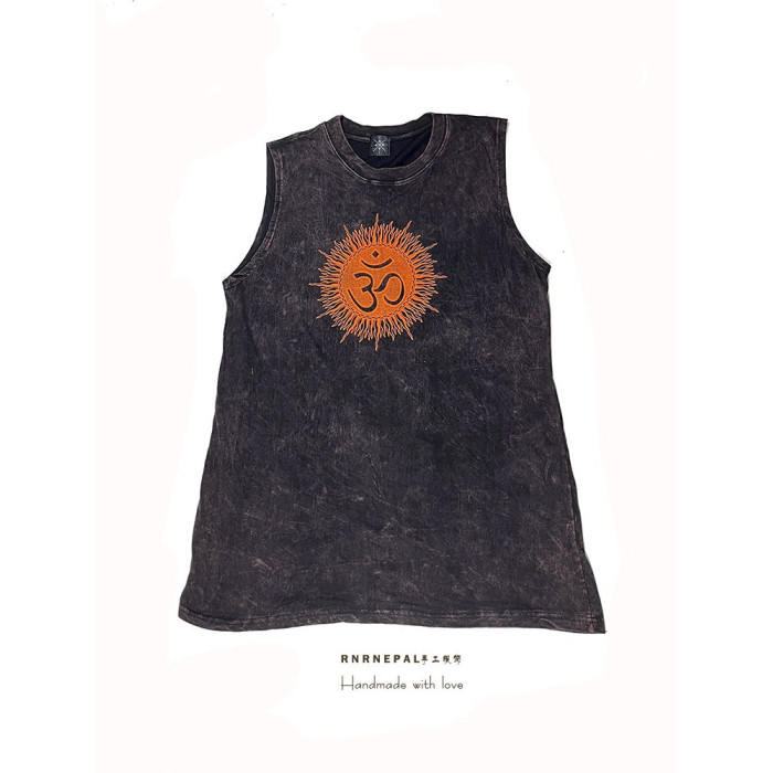 RNRNEPAL原創背心梵文手工拓印嬉皮上衣小衆無袖做舊T恤夏季純棉
