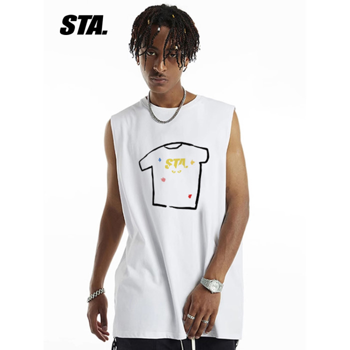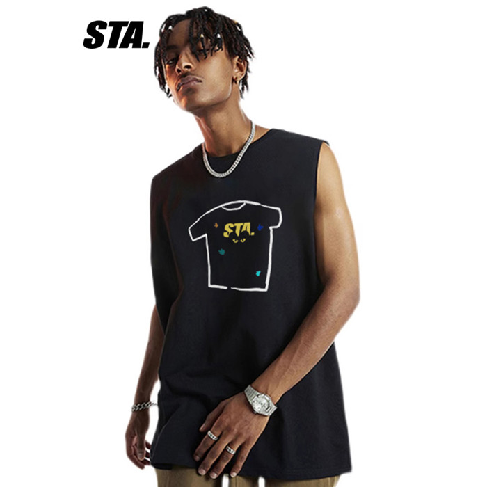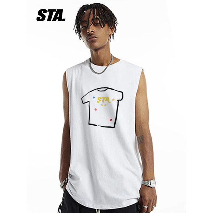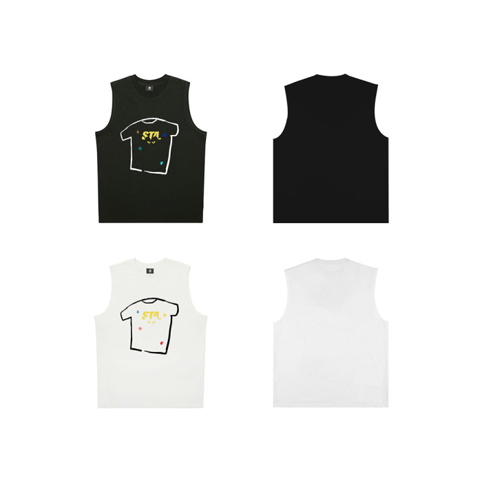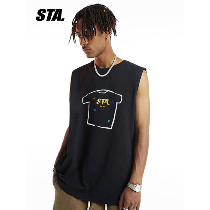 STA印花新款涼感純棉圓領背心男女款夏季潮牌運動百搭休閒無袖t恤