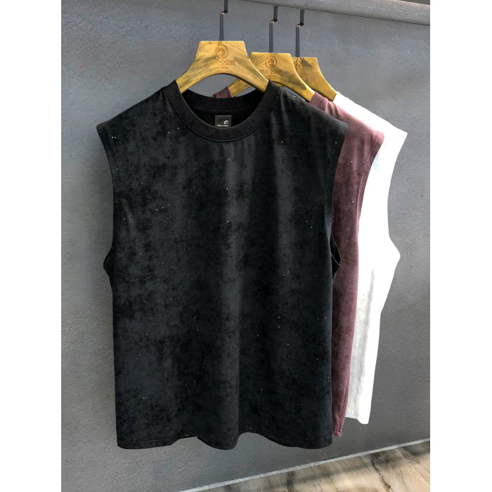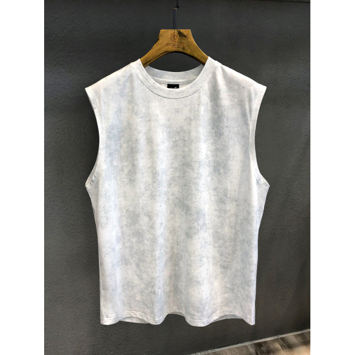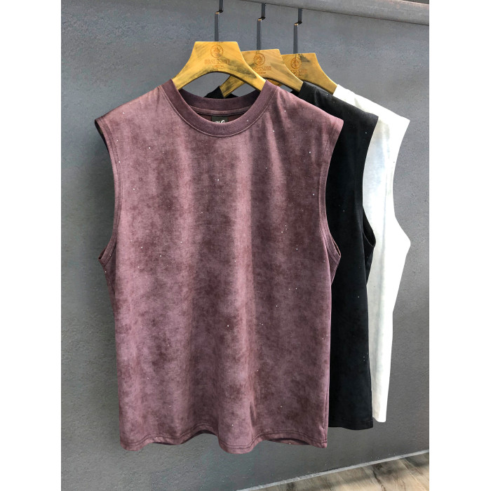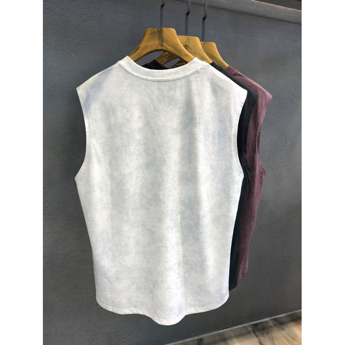 柔糯冰氧棉潑墨軋染設計潮牌無袖T恤男士健身背心2025寬松坎肩男