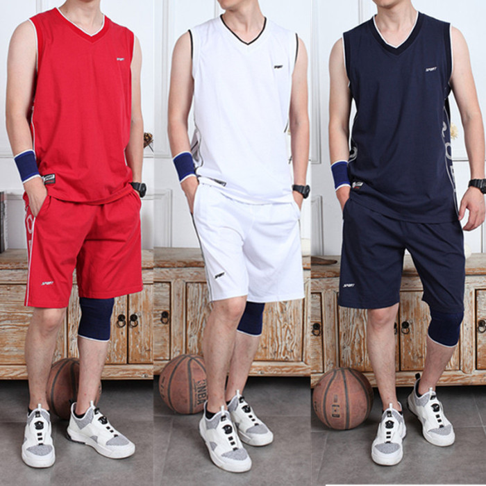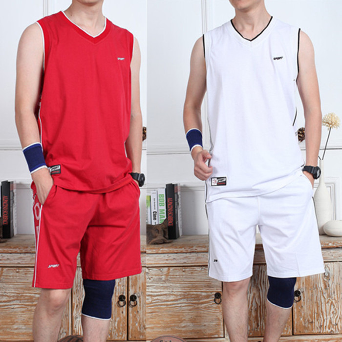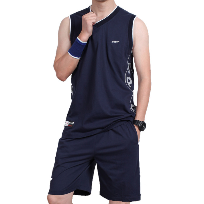 夏季跑步運動套裝男士純棉背心短褲寬松大碼無袖吸汗透氣籃球衣服