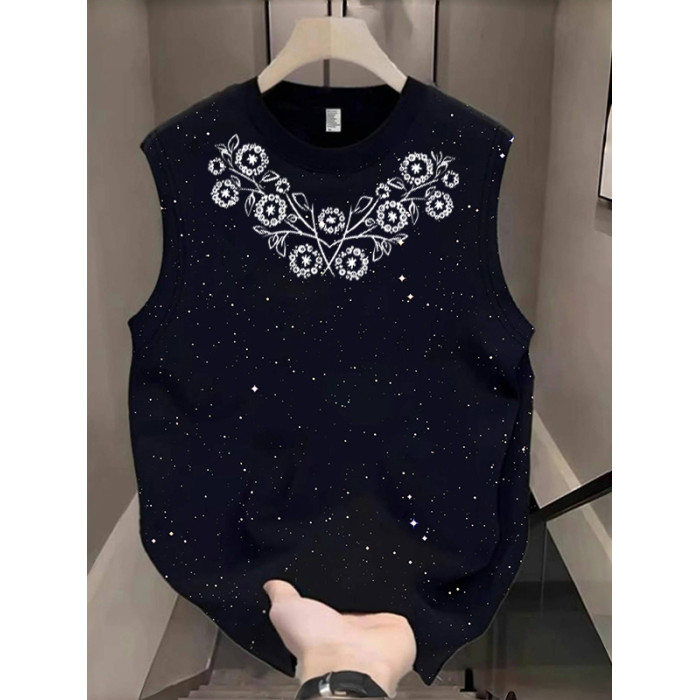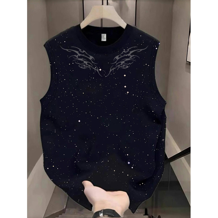 純棉背心男女夏季潮牌ins寬松圓領體恤運動坎肩滿天星無袖T恤上衣