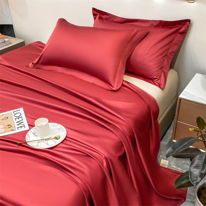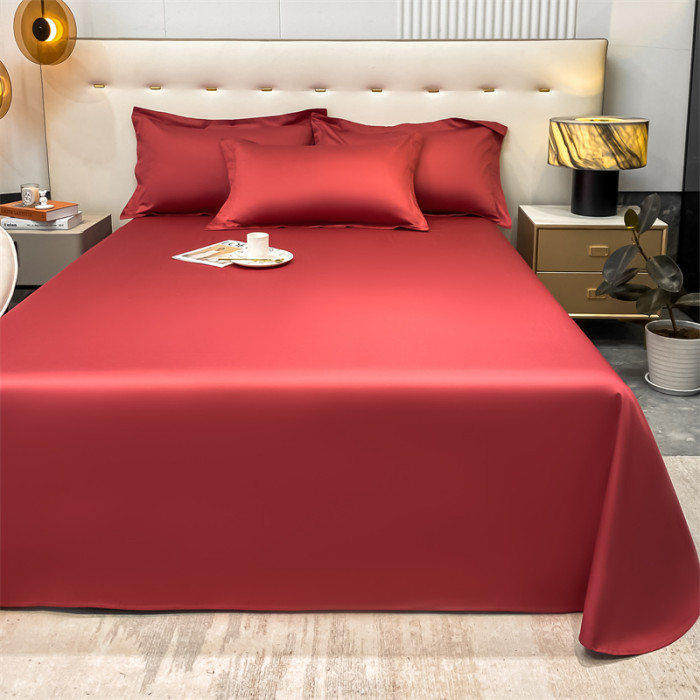 A類大紅色長絨棉純棉床單單件100全棉結婚婚慶雙人被單枕套三件套