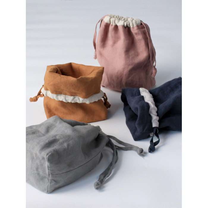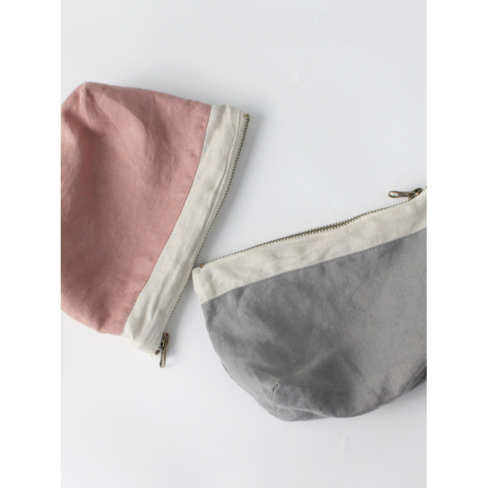 雙層拼色純亞麻化妝包 實用可攜式簡約隨身手拿包多功能旅行收納包