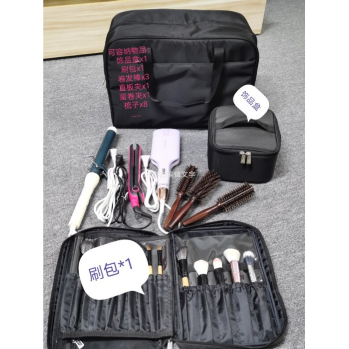 化妝飾品收納包大容量造型工具包新娘跟妝隨身包差旅衣物包包黑色