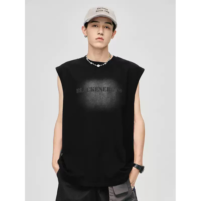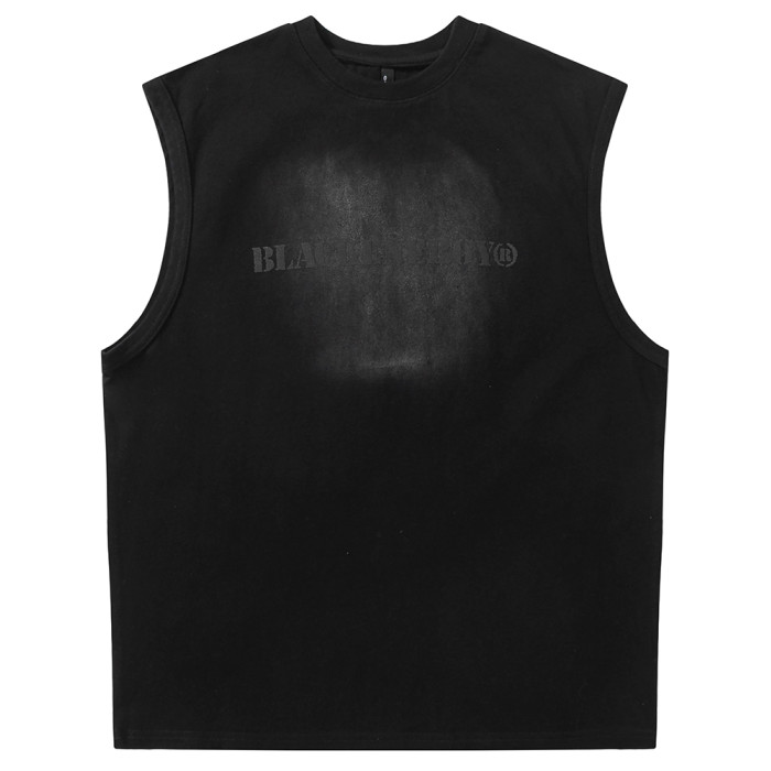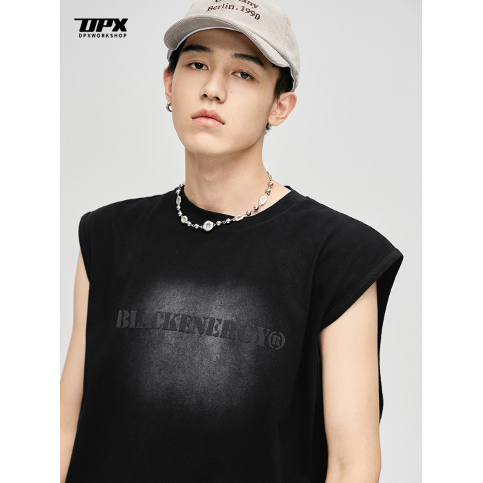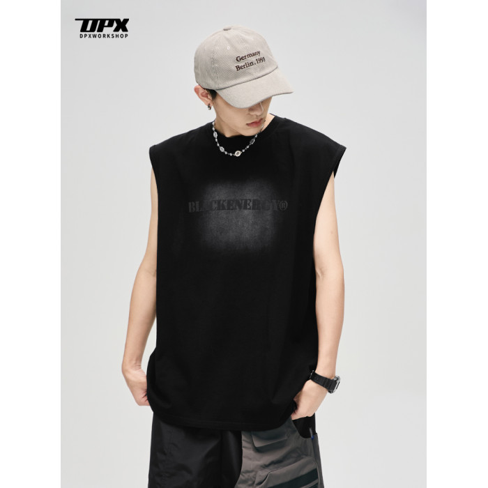 DPX潮牌美式虛幻漸變印花夏季無袖t恤男重磅寬松休閒水洗背心坎肩