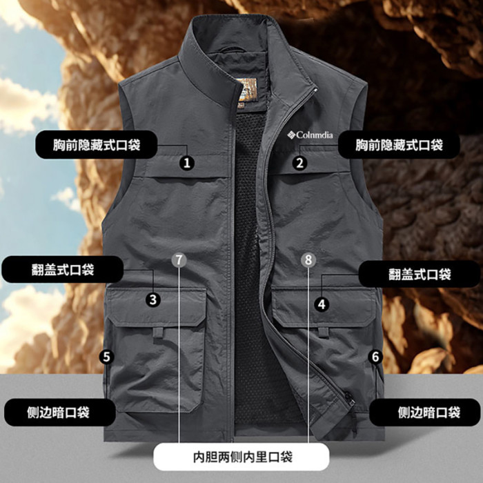 25哥倫新款戶外速乾馬甲大碼多口袋坎肩立領釣魚攝影男士休閒外套