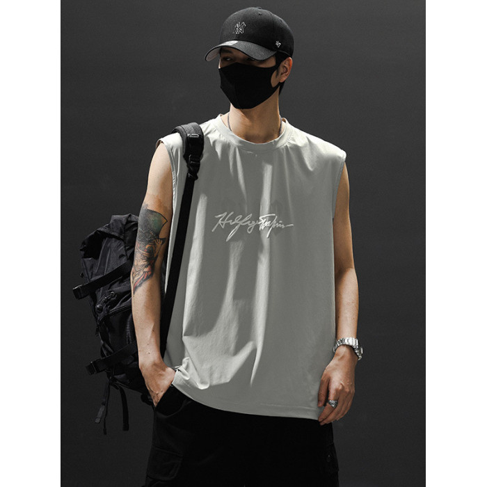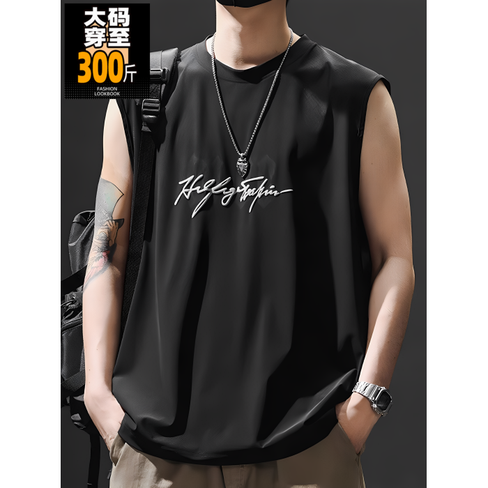 大碼冰絲背心無袖T恤坎肩男寬松胖子加肥加大運動籃球衫居家打底
