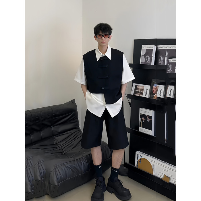 黑襯衫+黑馬甲+黑色短褲 三件套