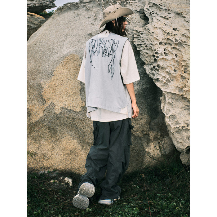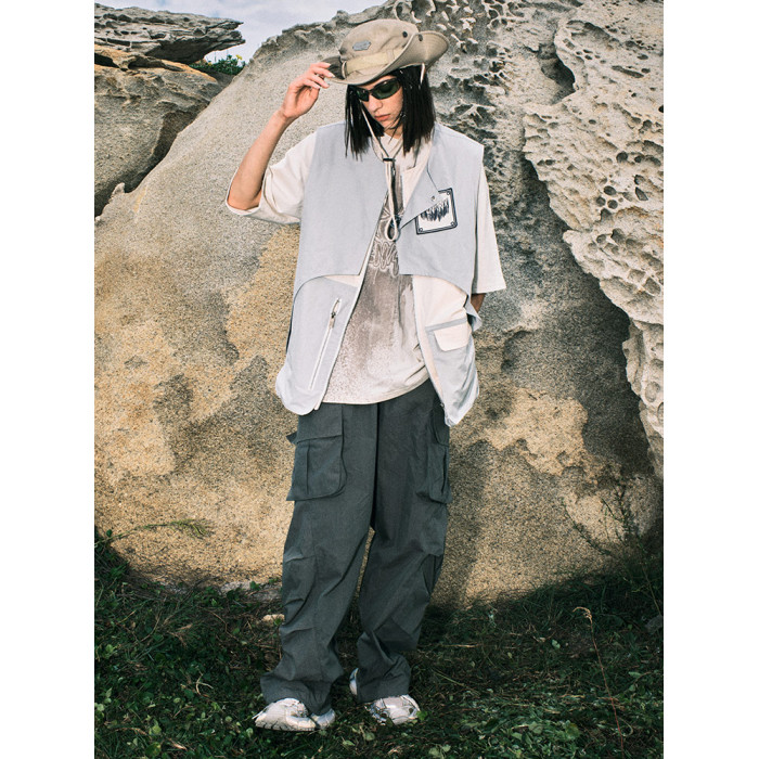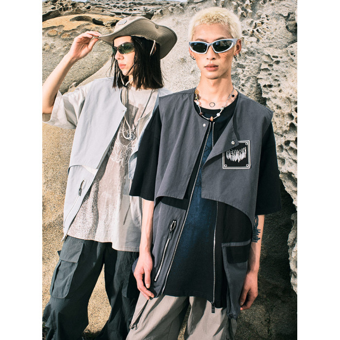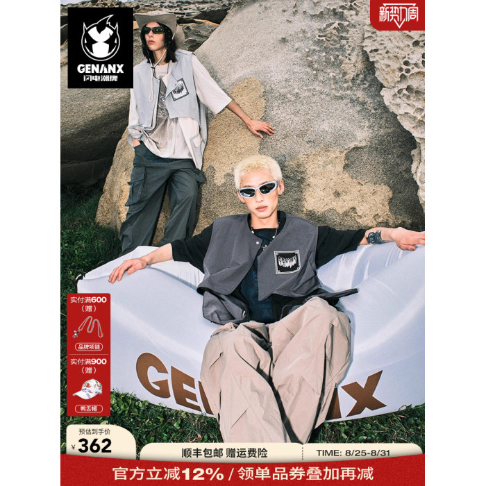GENANX閃電潮牌美潮戶外不規則拼接撞色工裝口袋馬甲張子墨同款