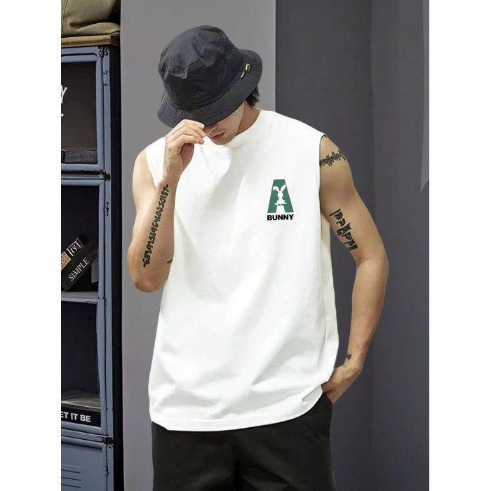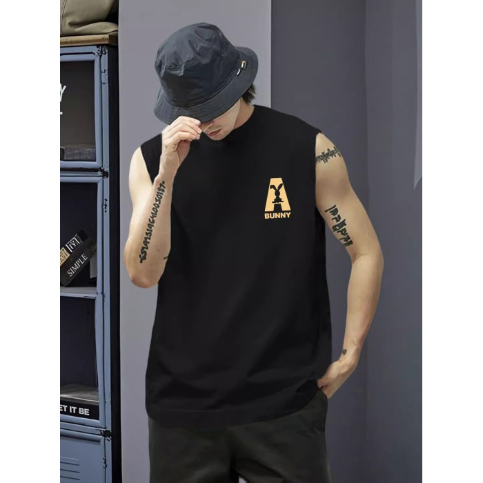 倉石一樹潮牌背心純棉夏季無袖t恤男款美式寬松百搭字母坎肩上衣