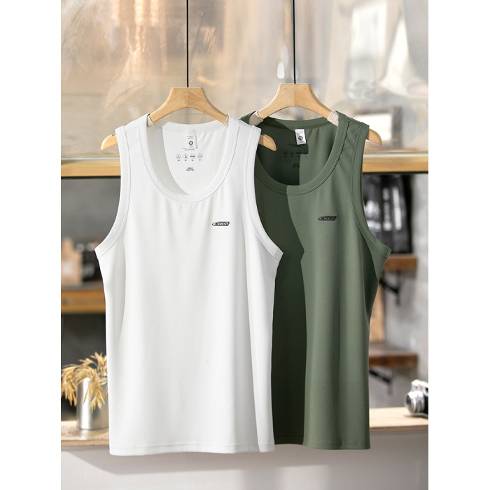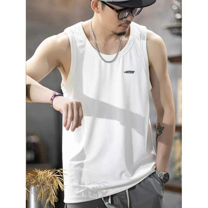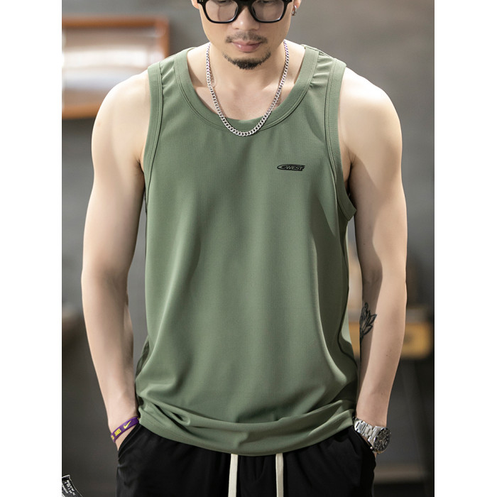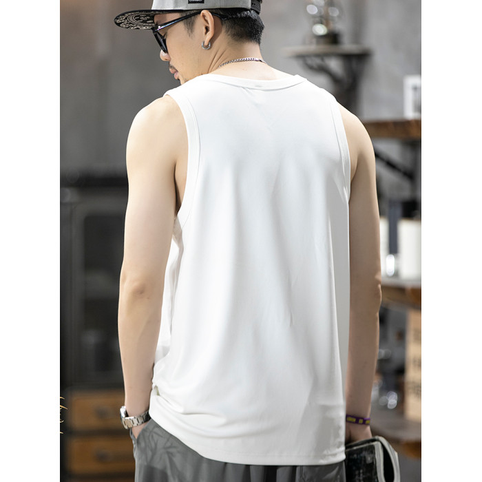 180g薄款冰絲速乾背心男款夏季寬松潮牌高彈運動健身無袖男T恤潮
