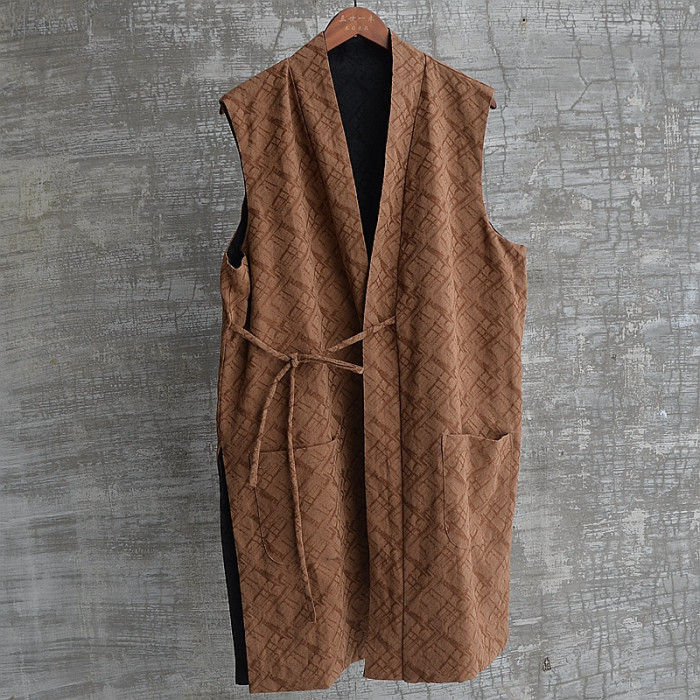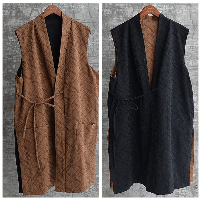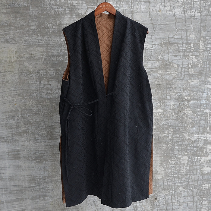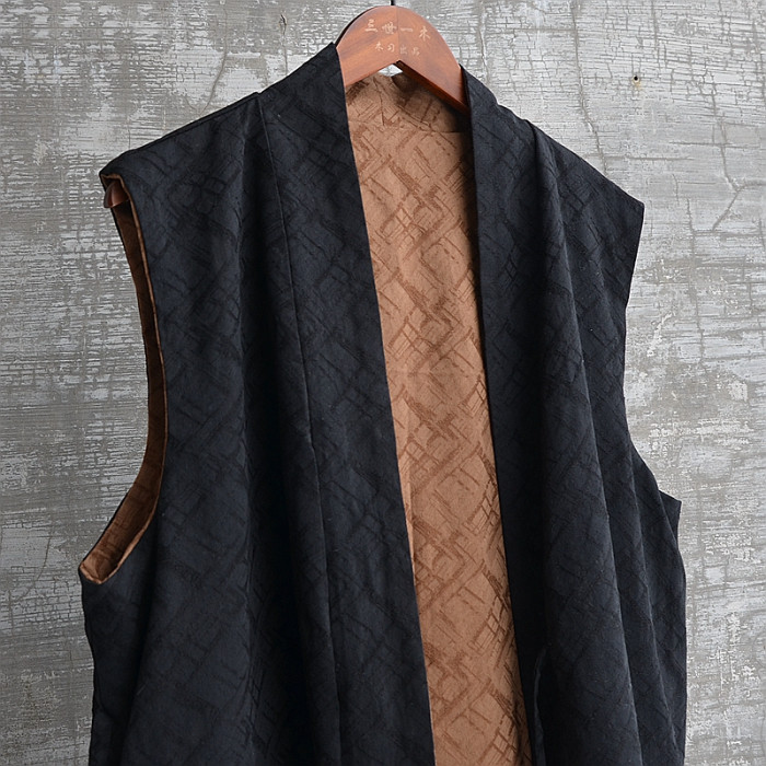 三世一木春秋兩面穿中長馬甲明製比甲顯瘦中性百搭高級棉麻漢服帥