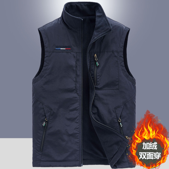 春夏秋季薄款防水防風馬甲多口袋雙面穿寬松中老年男外套無袖坎肩