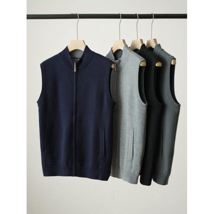 可機洗男士羊毛馬甲 28支雙股 針織立領開衫坎肩外套 秋冬款男裝