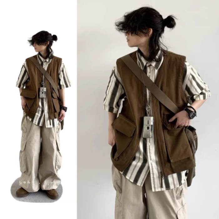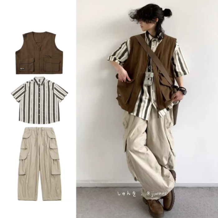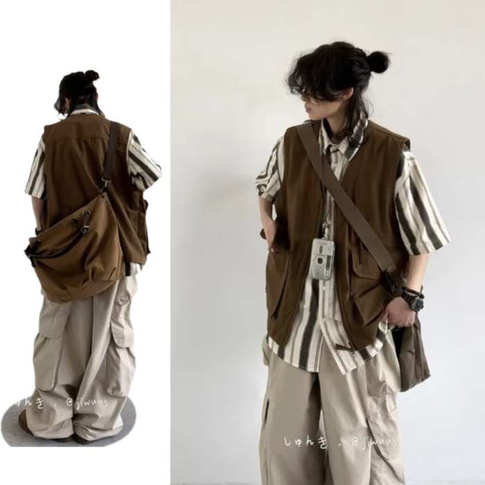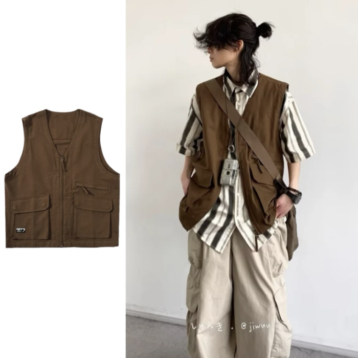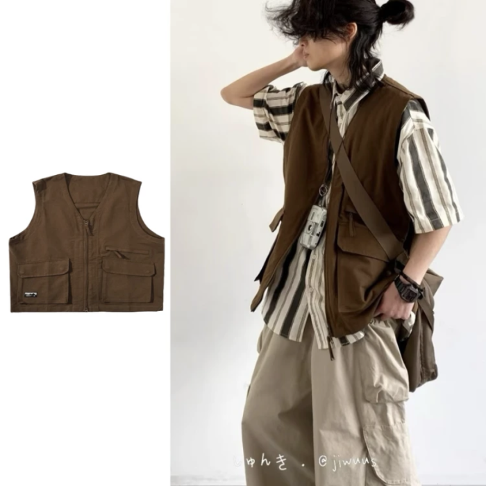 三件裝/單件夏日系復古工裝馬甲男女慵懶學院風寬松休閒無袖外套