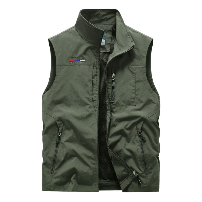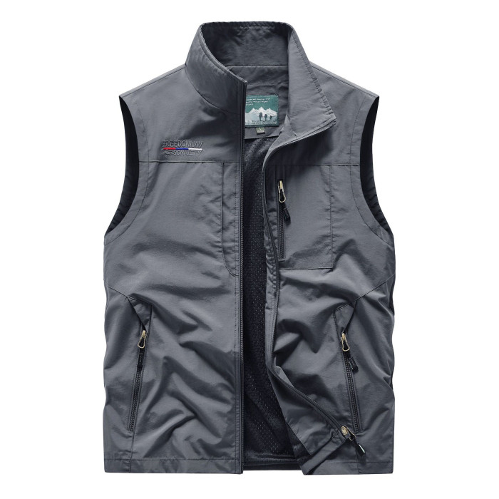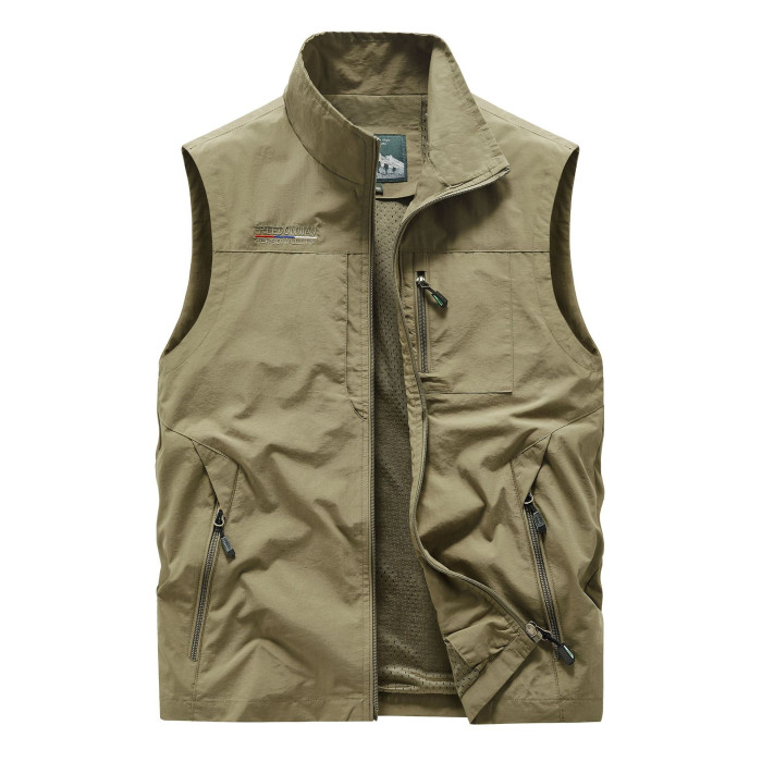 春夏季防水防風馬甲多口袋薄款寬松休閒釣魚攝影中老年男無袖坎肩