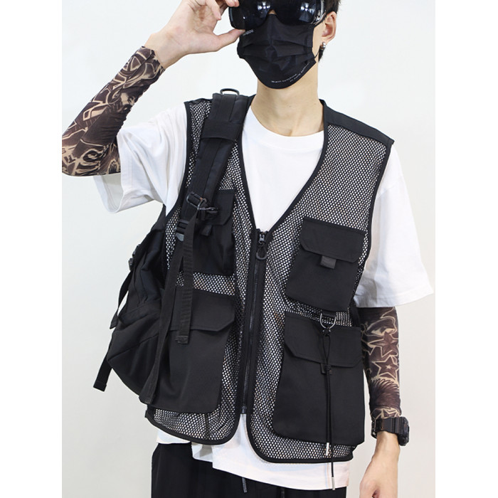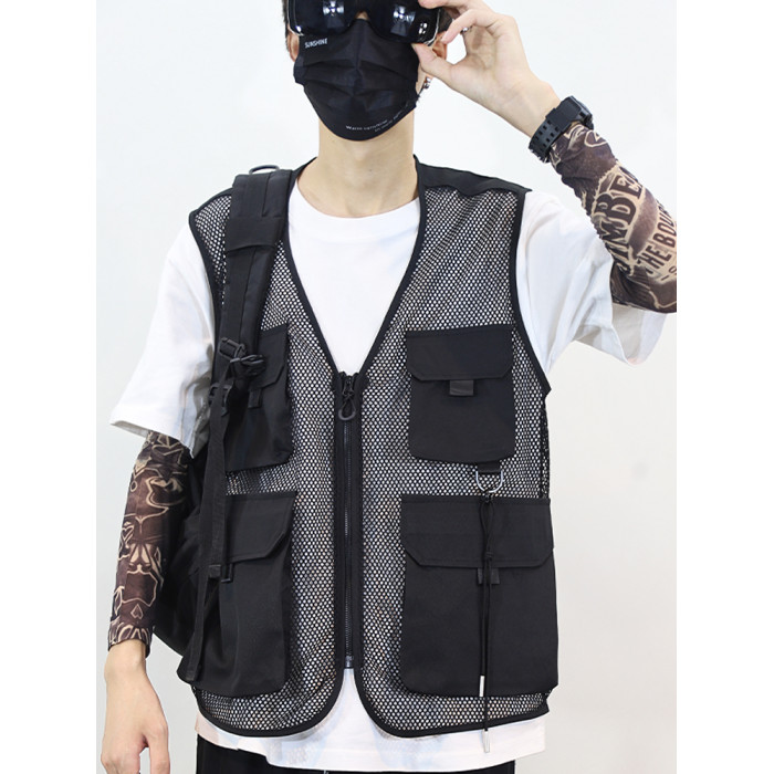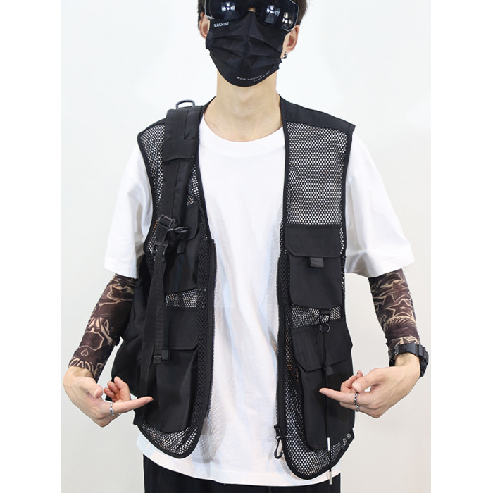 塵述2025新款釣魚馬甲男士薄款夏季多口袋網眼透氣痞帥風坎肩馬甲