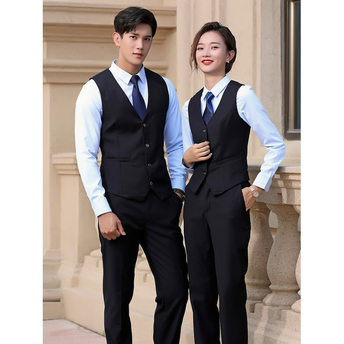 【女】 黑色馬甲+西褲+白襯衫