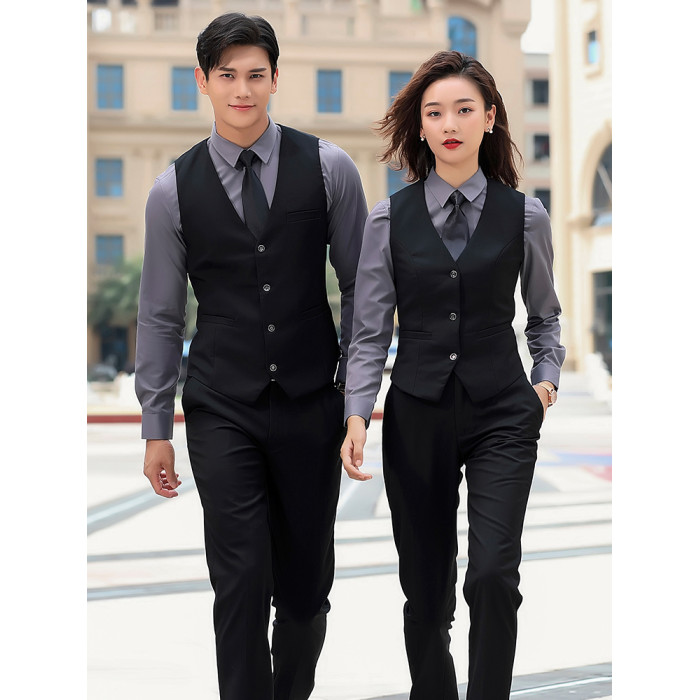 【女】 黑色馬甲+西褲+灰襯衫