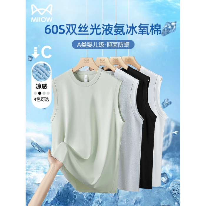 貓人液氨絲光棉涼感背心男夏季薄款冰絲無袖T恤2025新款運動汗衫