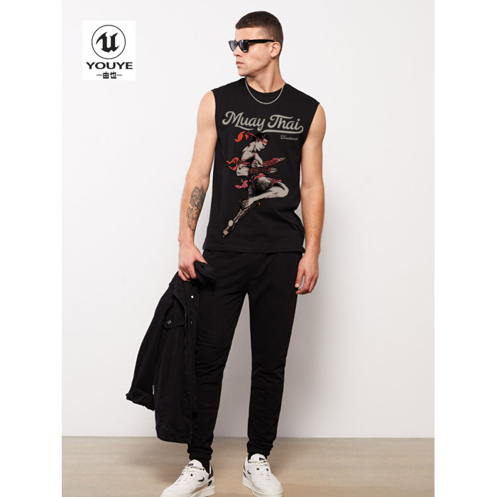 由也 男純棉拳擊UFC泰拳T散打健身搏擊印花運動訓練背心MMA衣服