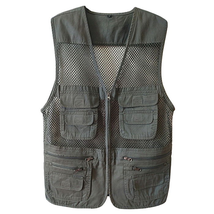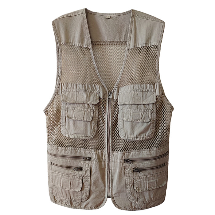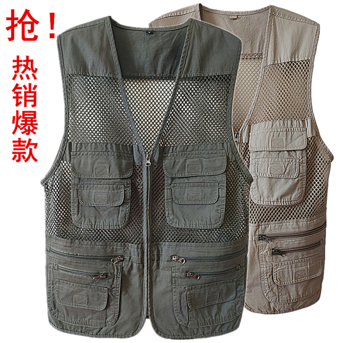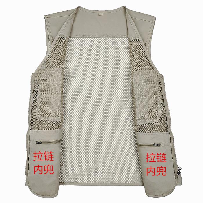 夏季薄款網眼馬甲登山馬夾休閒多口袋中年男攝影釣魚v領大碼坎肩