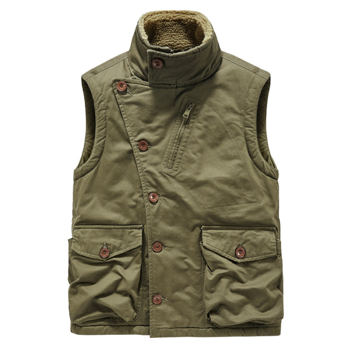 舊時代加絨領馬甲復古二戰夾克經典款美式獵裝單排釦斜胸坎肩外套