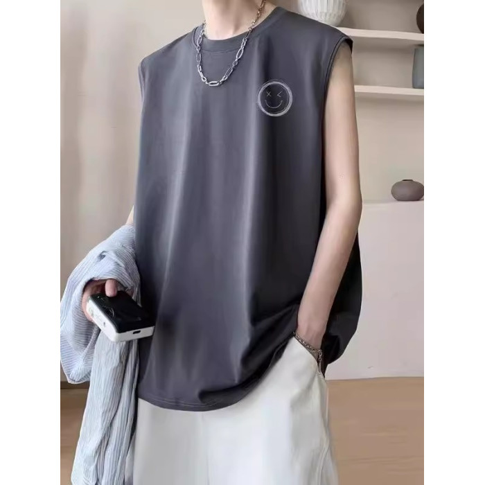 重磅冰絲索羅娜運動速乾短袖t恤男夏季新款港風無袖體恤背心潮牌